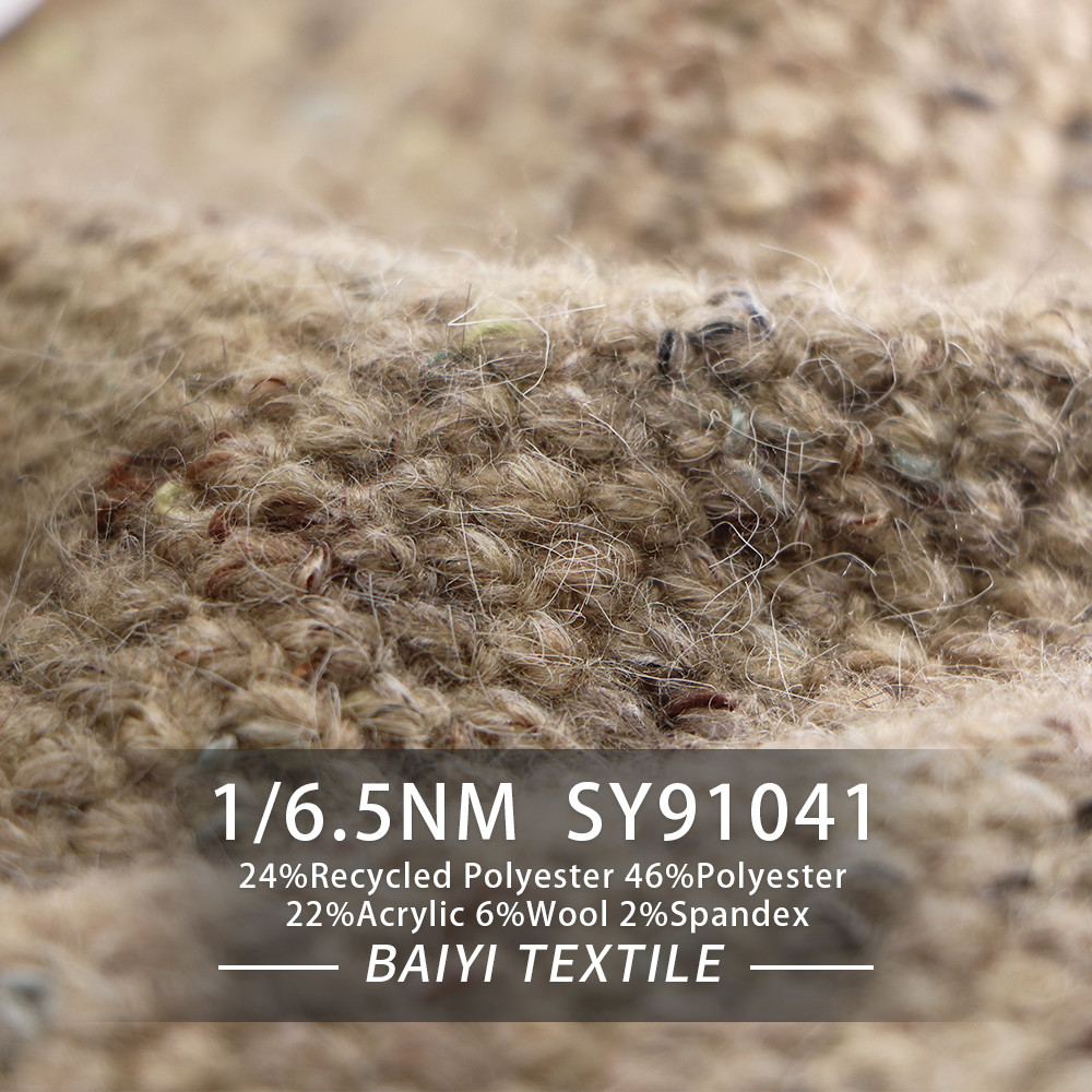 Особенность: Хорошая упругость, пушистый и мягкий Состав: 24%Recycled полиэстер 46%Polyester 22%Acrylic 6%Wool 2%Spandex